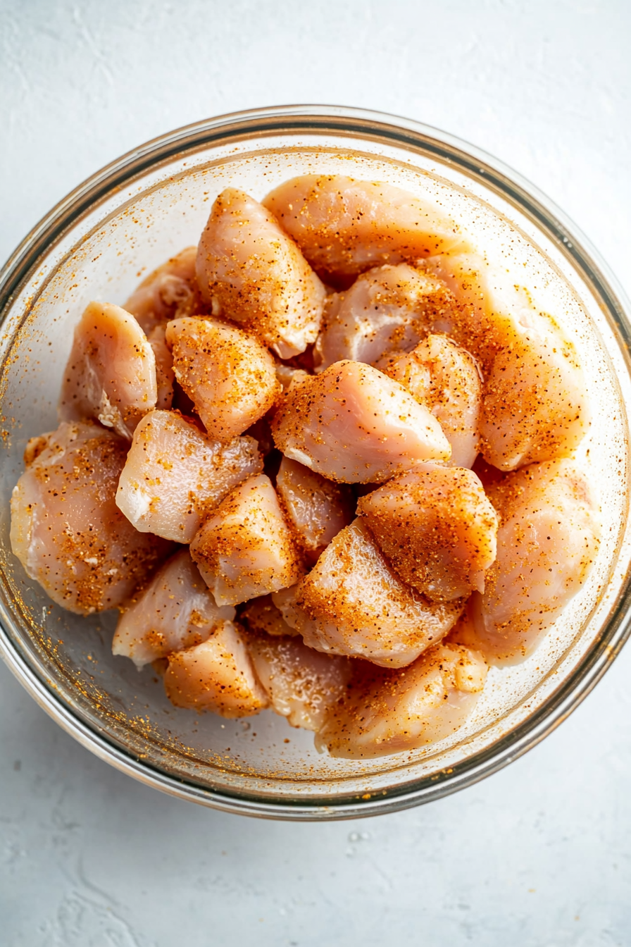 - 1½ pounds boneless skinless chicken breast cut into bite-size pieces