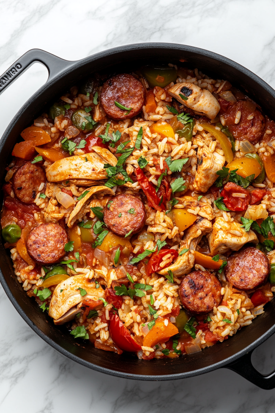 Chicken Jambalaya is more than just a meal—it’s a celebration of bold flavors and vibrant culture that fills your kitchen with irresistible aromas. This recipe brings together tender chicken, smoky Andouille sausage, and a medley of fresh vegetables, all simmered in a spicy tomato base with Cajun seasoning that dances on your taste buds.