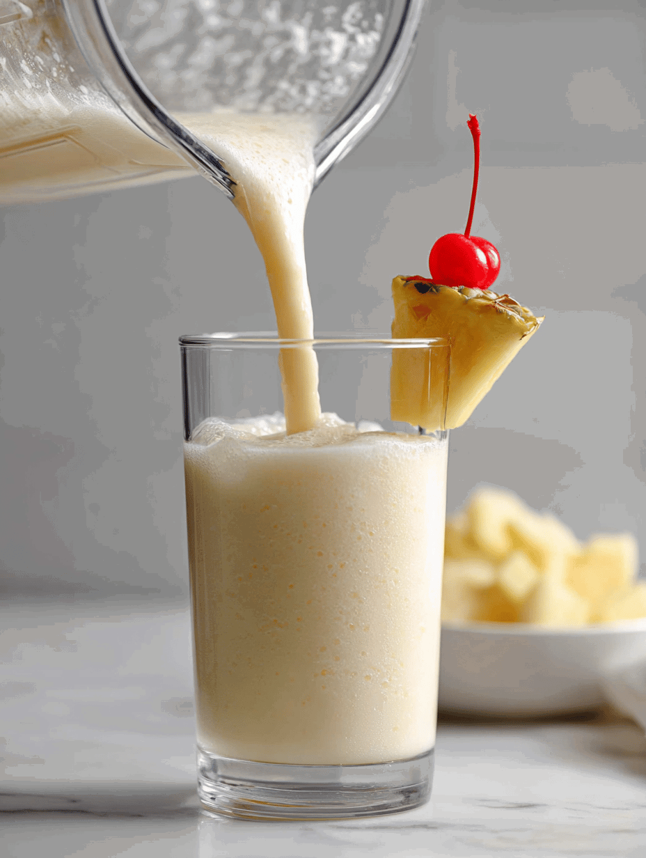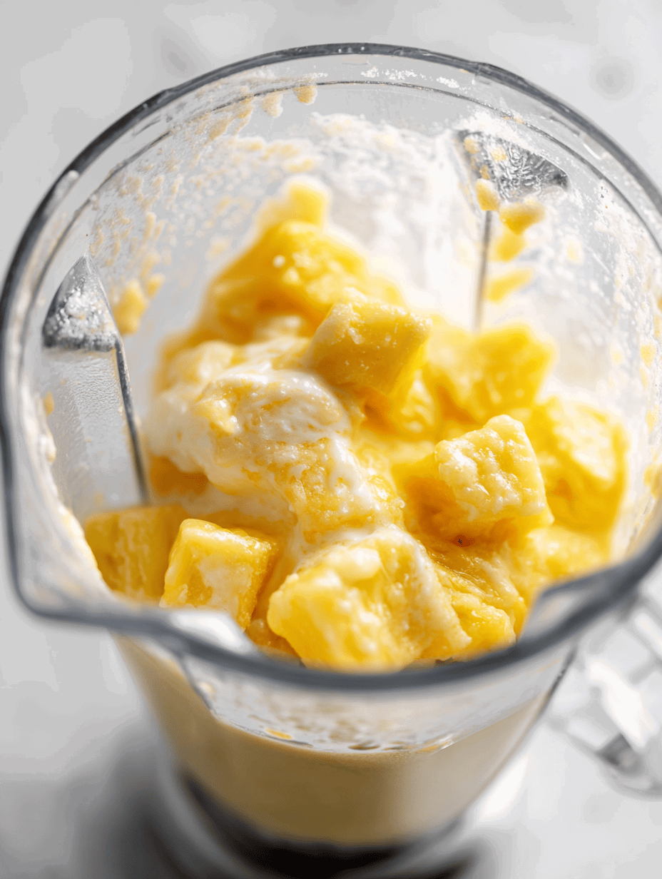 - Check the consistency—if it’s too thick, add a splash more pineapple juice or a little water; if too thin, add a few more frozen pineapple chunks or ice and blend briefly.
