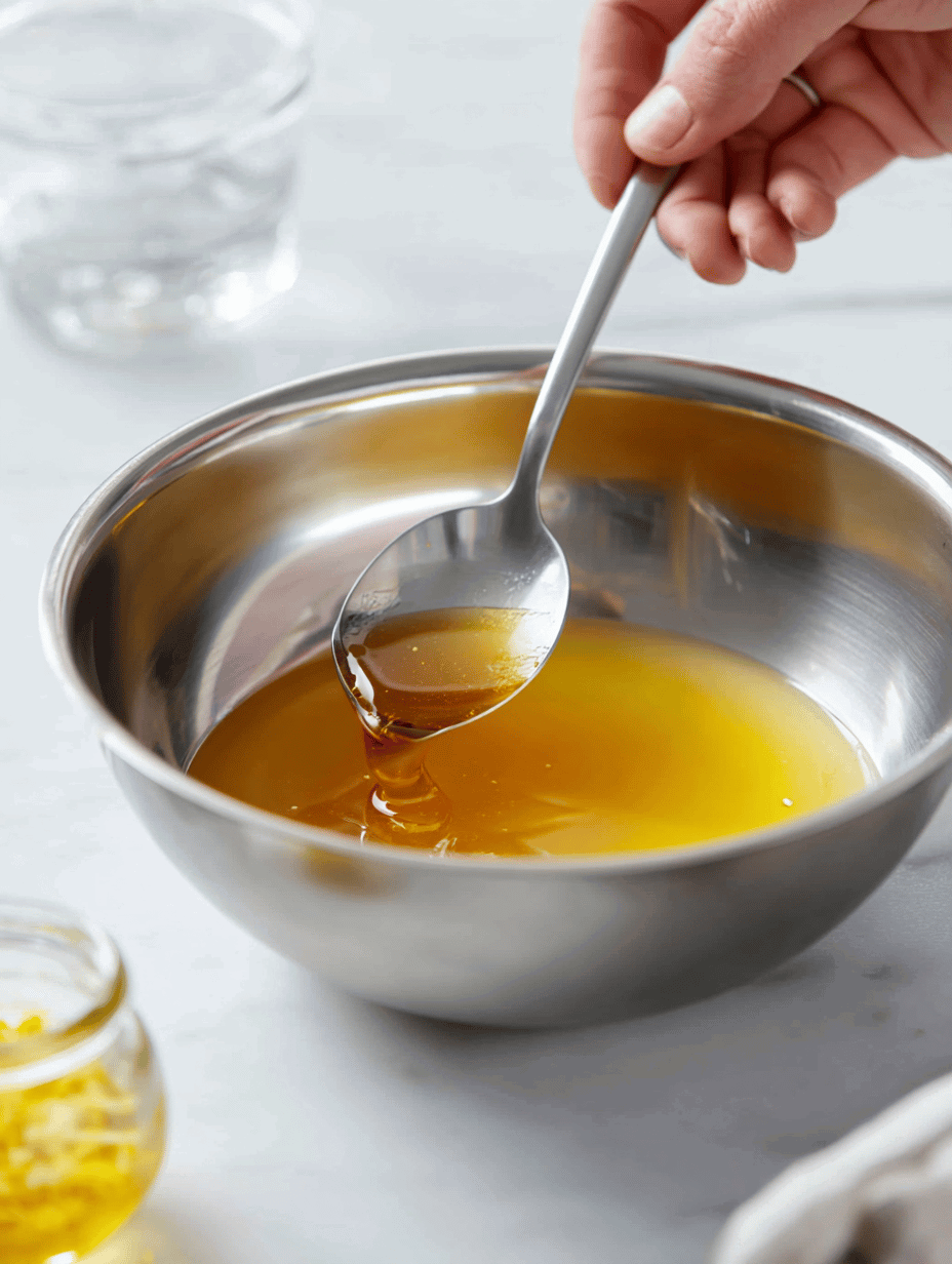 • Pour the whiskey, simple syrup, and fresh lemon juice into a mixing bowl and whisk until well combined. The mixture should smell bright and citrusy, with a hint of sweetness.