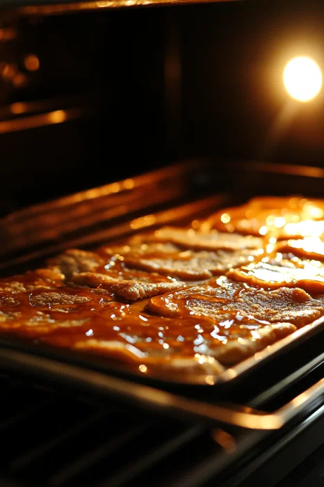 - Place the baking sheet in the preheated oven and bake for about 5-7 minutes, or until the caramel layer is bubbly.