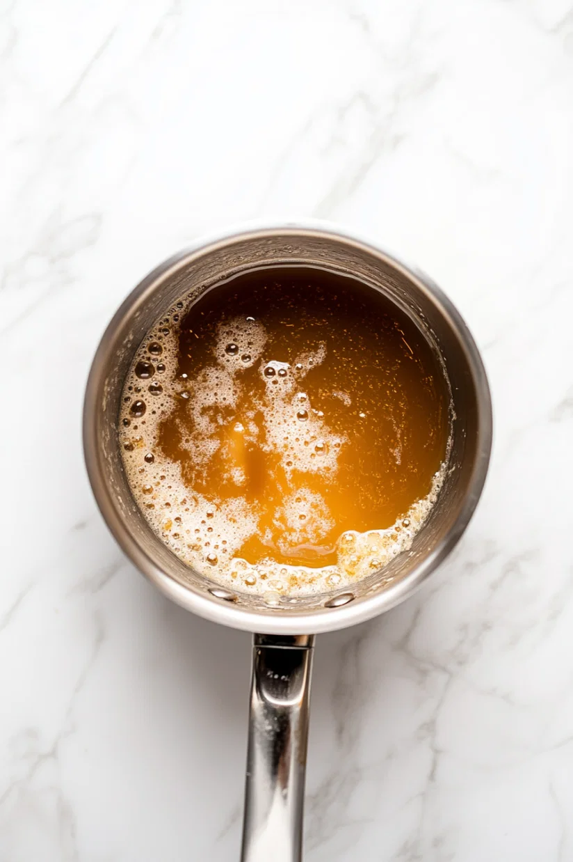 - Once the butter is melted, add the brown sugar to the saucepan. Stir constantly until the mixture comes to a boil.