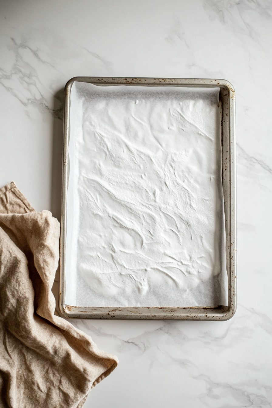 Cranberry Tart Preheating Oven and Preparing Baking Tray Step with White Marble Cooktop
