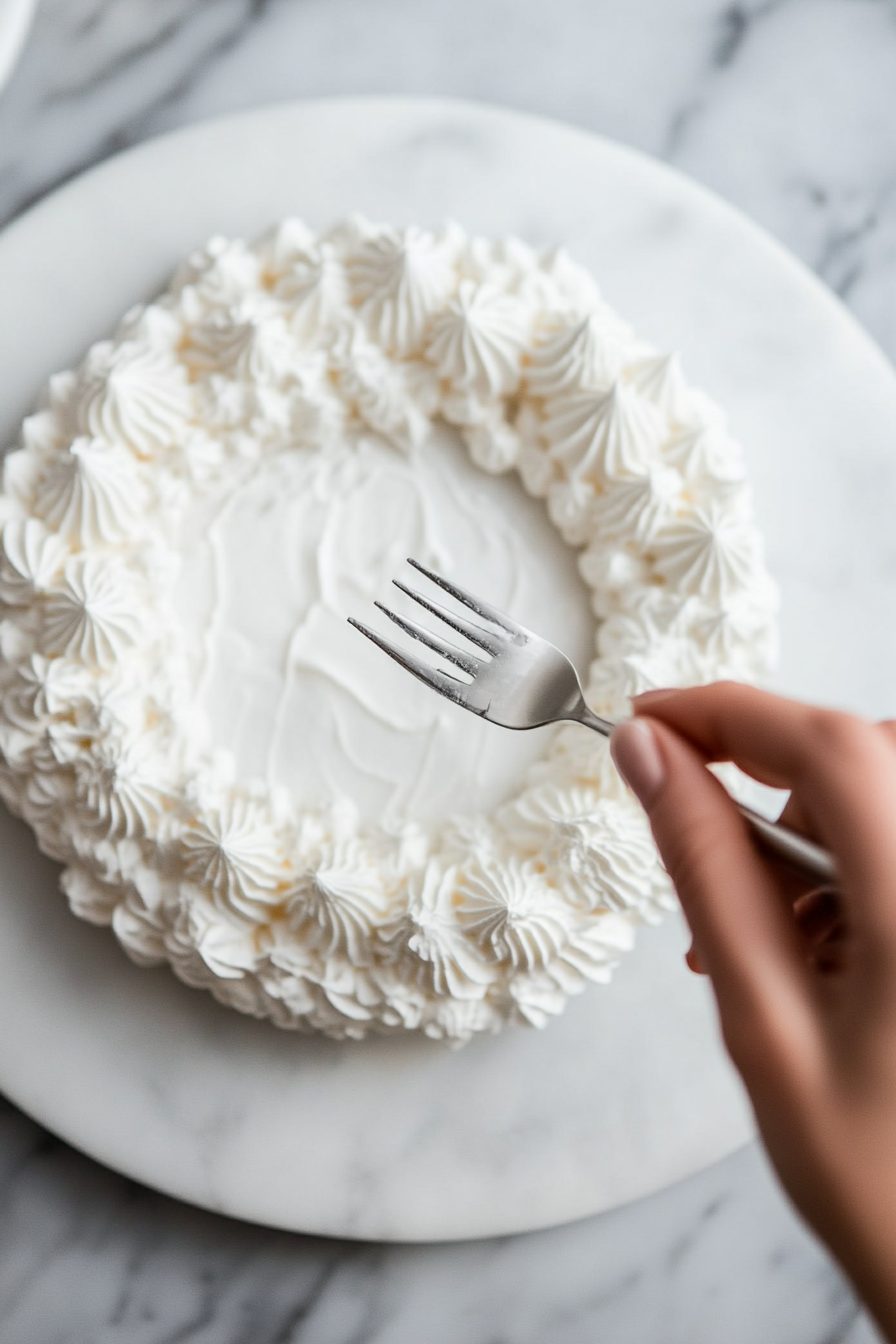 Texturing Meringue with Fork for Cranberry Tart Recipe