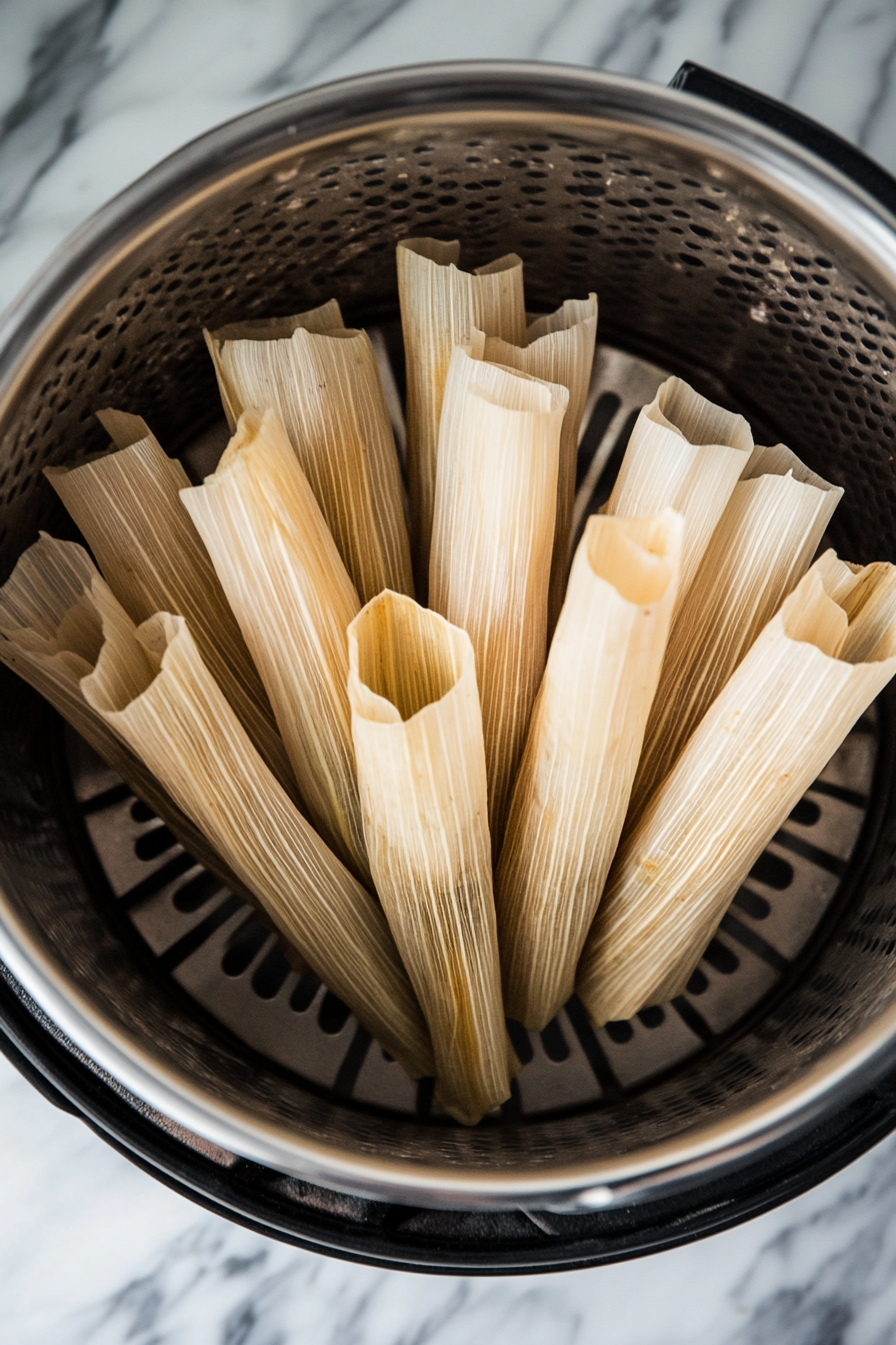 - Steam the Tamales Right: Stand tamales upright in the steamer basket with the open end facing up for the best results. Avoid overcrowding the steamer to ensure they cook evenly.