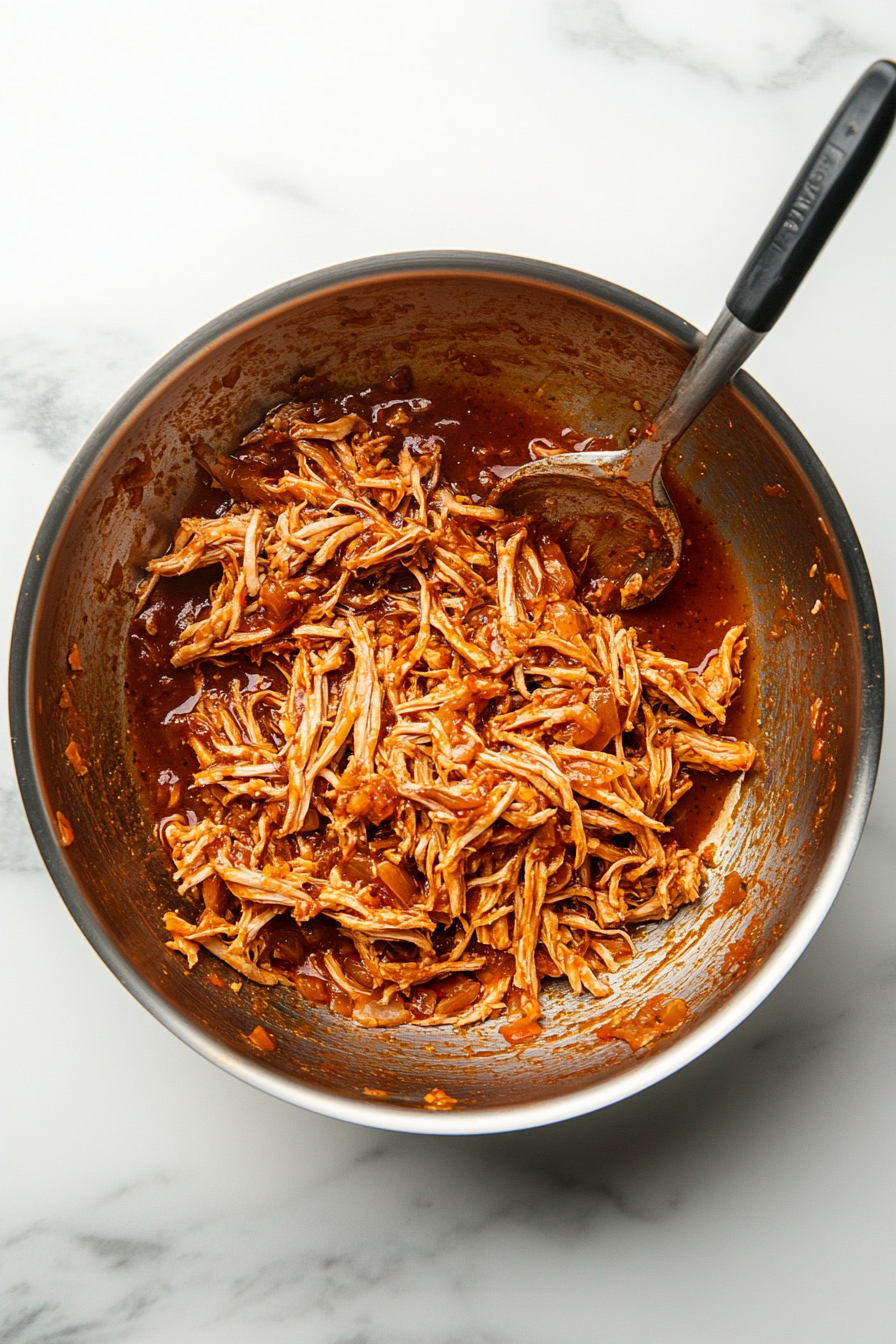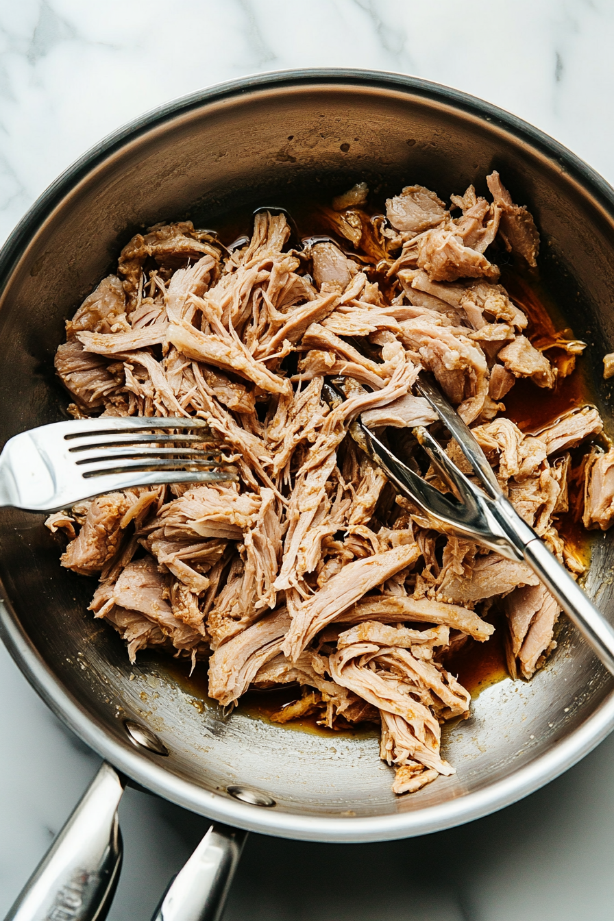 - Pressure-Cook the Pork: Pressure-cooking the pork with seasonings helps lock in moisture and infuses the meat with rich flavors. Shredding the pork after cooking allows it to soak up the chili sauce for maximum flavor.