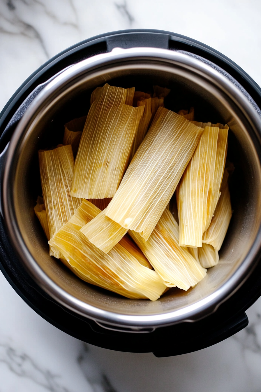 - Steam Tamales: Cook for 35 minutes in the Instant Pot on High Pressure.