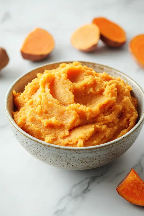 - Prep the Sweet PotatoBoil the sweet potato until soft and mash it while it’s still warm, it mixes better this way.