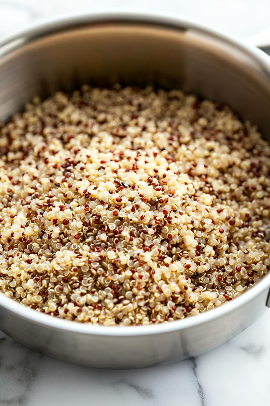 - In a saucepan, bring quinoa and broth to a boil, then reduce heat, cover, and simmer for 15 minutes until liquid is absorbed and quinoa is fluffy.