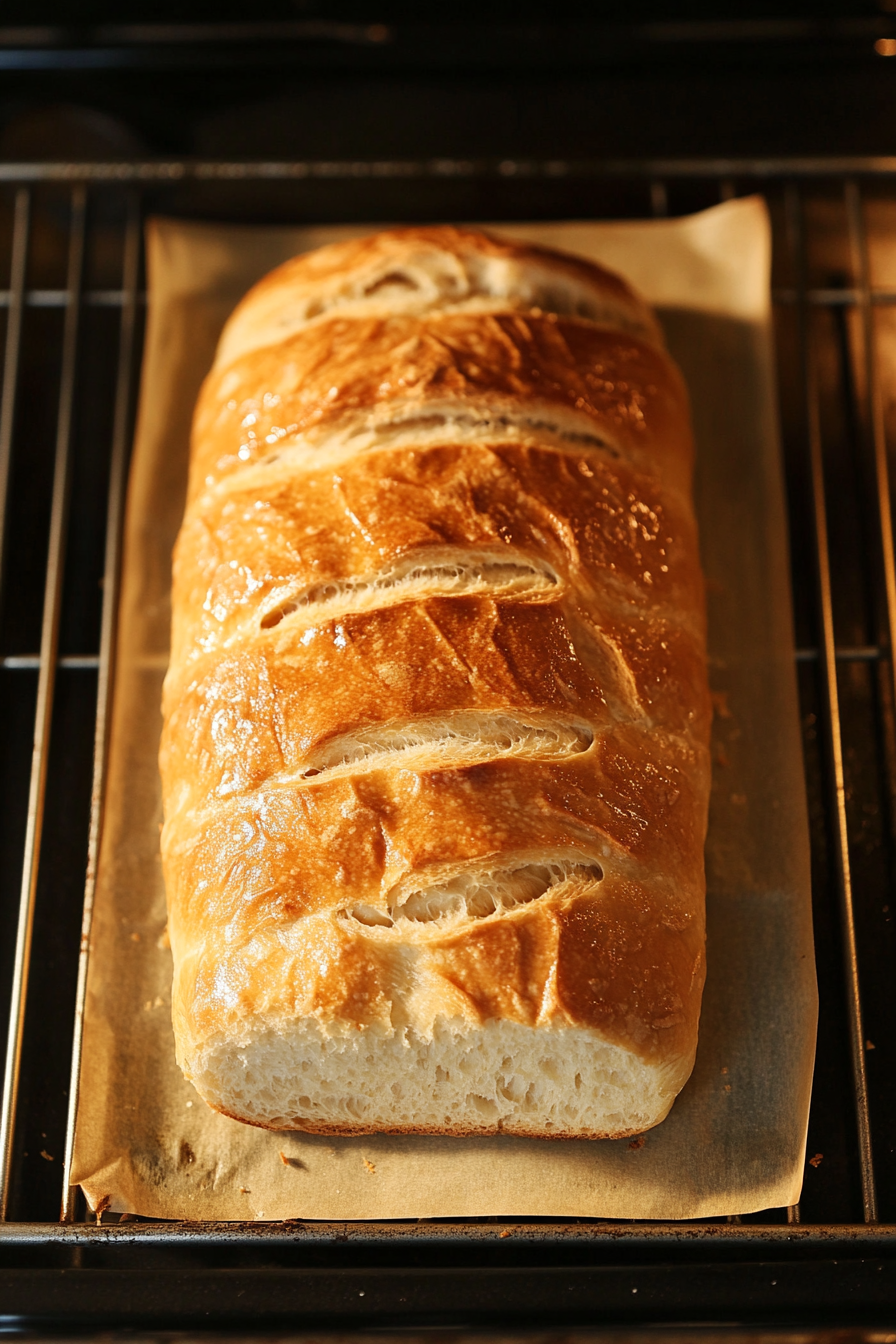 - Prepare the Ciabatta: Warm the ciabatta loaf in the oven and slice it horizontally.