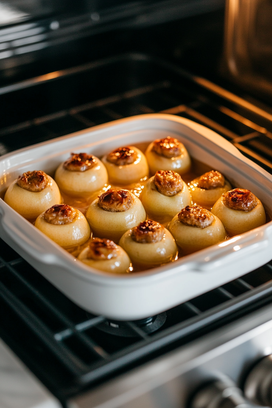 • Pour warm water into the pan around the apples to prevent them from drying out.