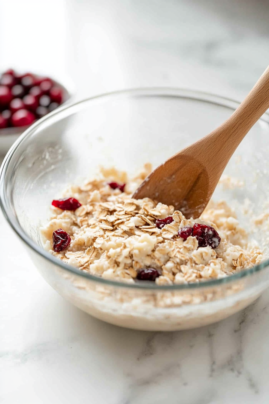 Stirring oats and add-ins into Classic Baked Apples filling mixture