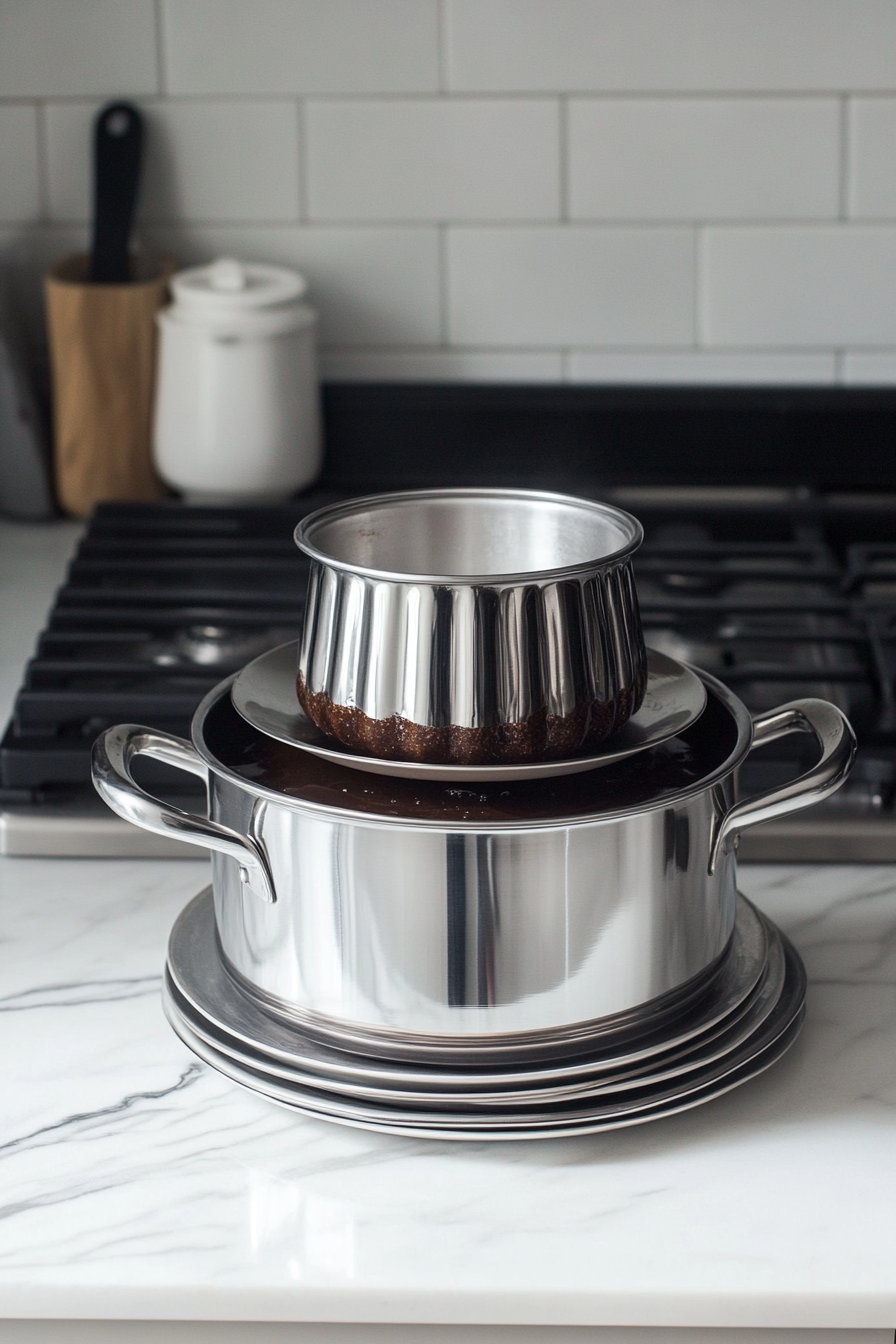 - Set a heatproof saucer upside-down in a large pot, place the pudding bowl on top, and fill the pot with water halfway up the bowl’s side.