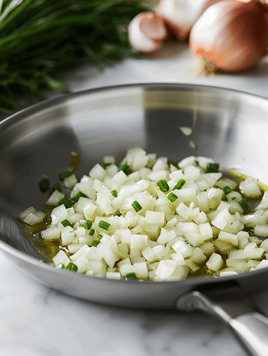- Heat a tablespoon of olive oil in a skillet over medium heat. Once shimmering, add the diced onion and sauté until translucent and fragrant—about 3-4 minutes, with a gentle sizzle and a softening appearance.