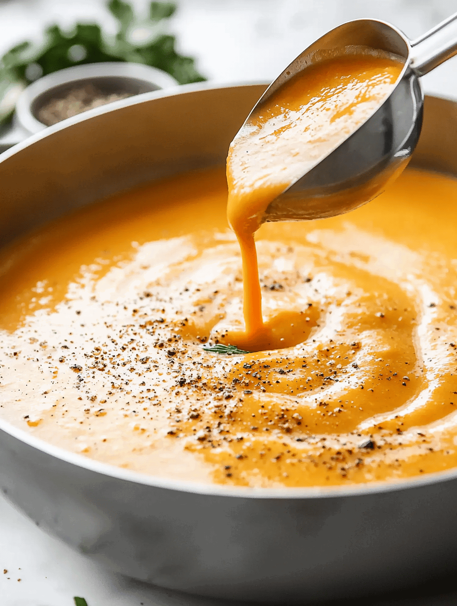 - Serve hot in bowls, topped with a drizzle of cream or a sprinkle of herbs if desired. Enjoy this comforting, velvety soup that’s perfect for chilly days.