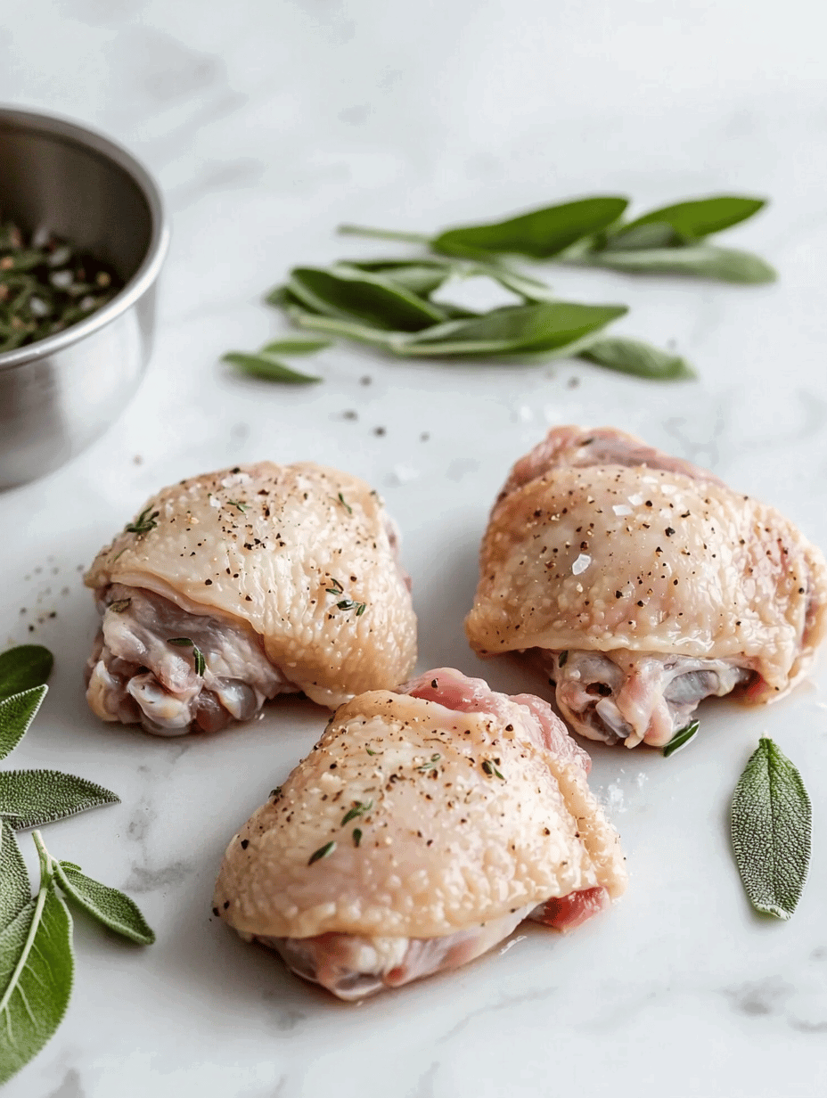 - Pat the chicken thighs dry with paper towels, then season both sides generously with salt, pepper, and chopped sage.