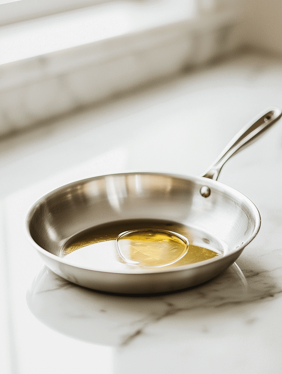 - Heat the skillet over medium-high heat and add a tablespoon of olive oil, letting it shimmer.