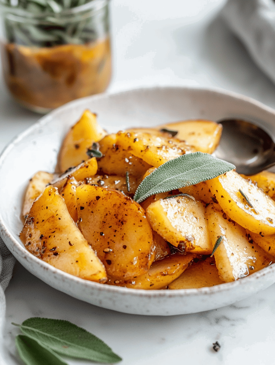 - Remove from heat, taste the sauce and apples, and adjust seasoning if needed. Sprinkle extra sage or herbs for garnish if desired.