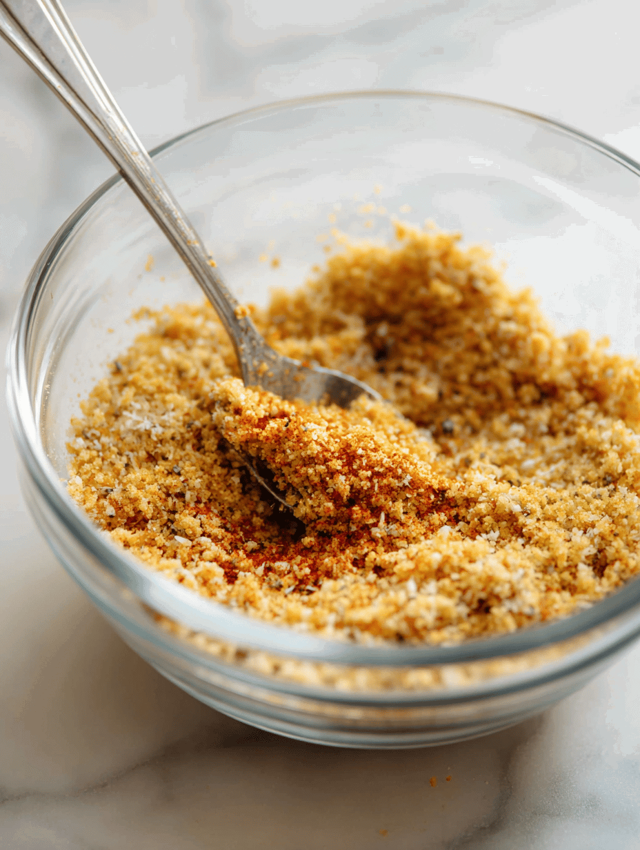 • In a small bowl, combine the bread crumbs, grated Parmesan, melted butter, and paprika. Mix until the crumbs are evenly coated and fragrant.