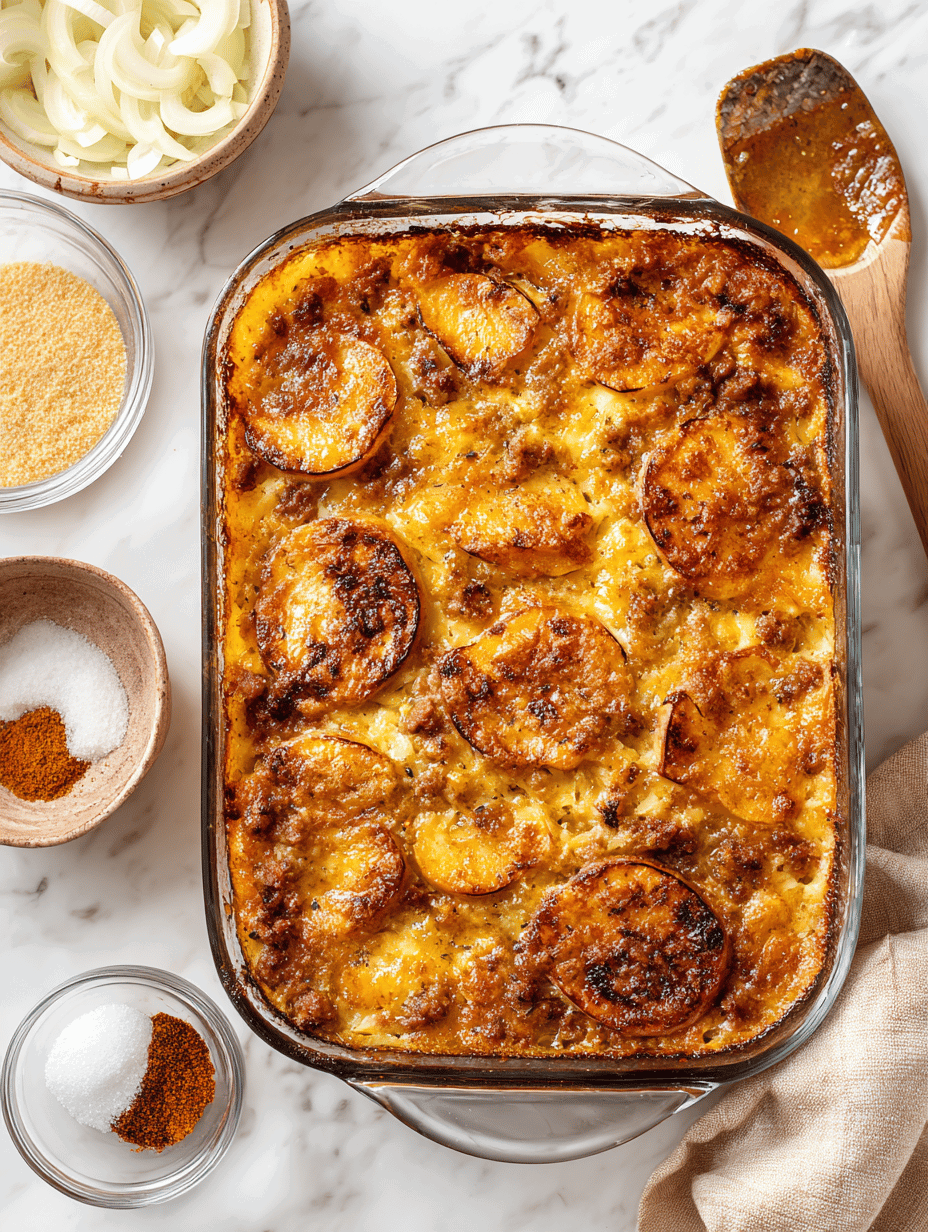 Serving this casserole warm is essential to enjoy its full spectrum of flavors. Consider pairing it with a simple green salad dressed with apple cider vinaigrette or a side of roasted vegetables for a complete fall-inspired meal. For an extra touch, drizzle a bit of honey or maple syrup over the top just before serving to enhance the sweetness and add a glossy finish. A dollop of sour cream or a sprinkle of chopped fresh herbs like parsley or chives can also elevate the dish.