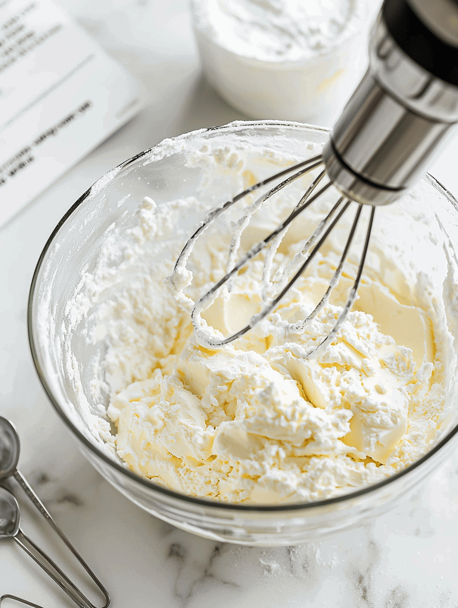 - In a large mixing bowl, beat the softened butter and powdered sugar together until the mixture is pale and fluffy, about 2-3 minutes.