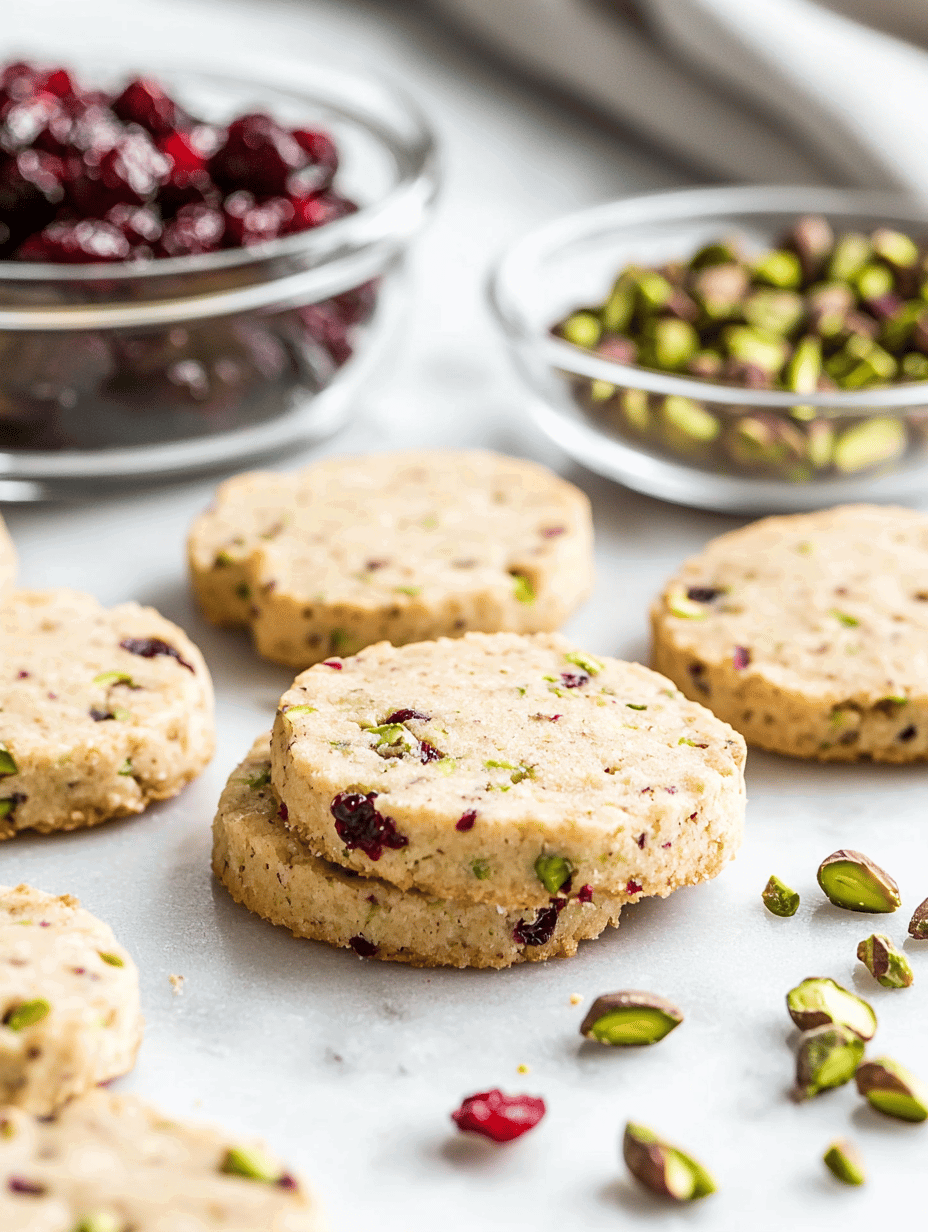 With their vibrant colors and balanced flavors, these Cranberry Pistachio Shortbread Cookies are perfect for the season of gatherings and reflection. They lend a touch of elegance to any cookie plate, whispering of cozy fires and festive melodies. Baking them is more than just making a treat—it’s about creating a moment of joy in everyday life.