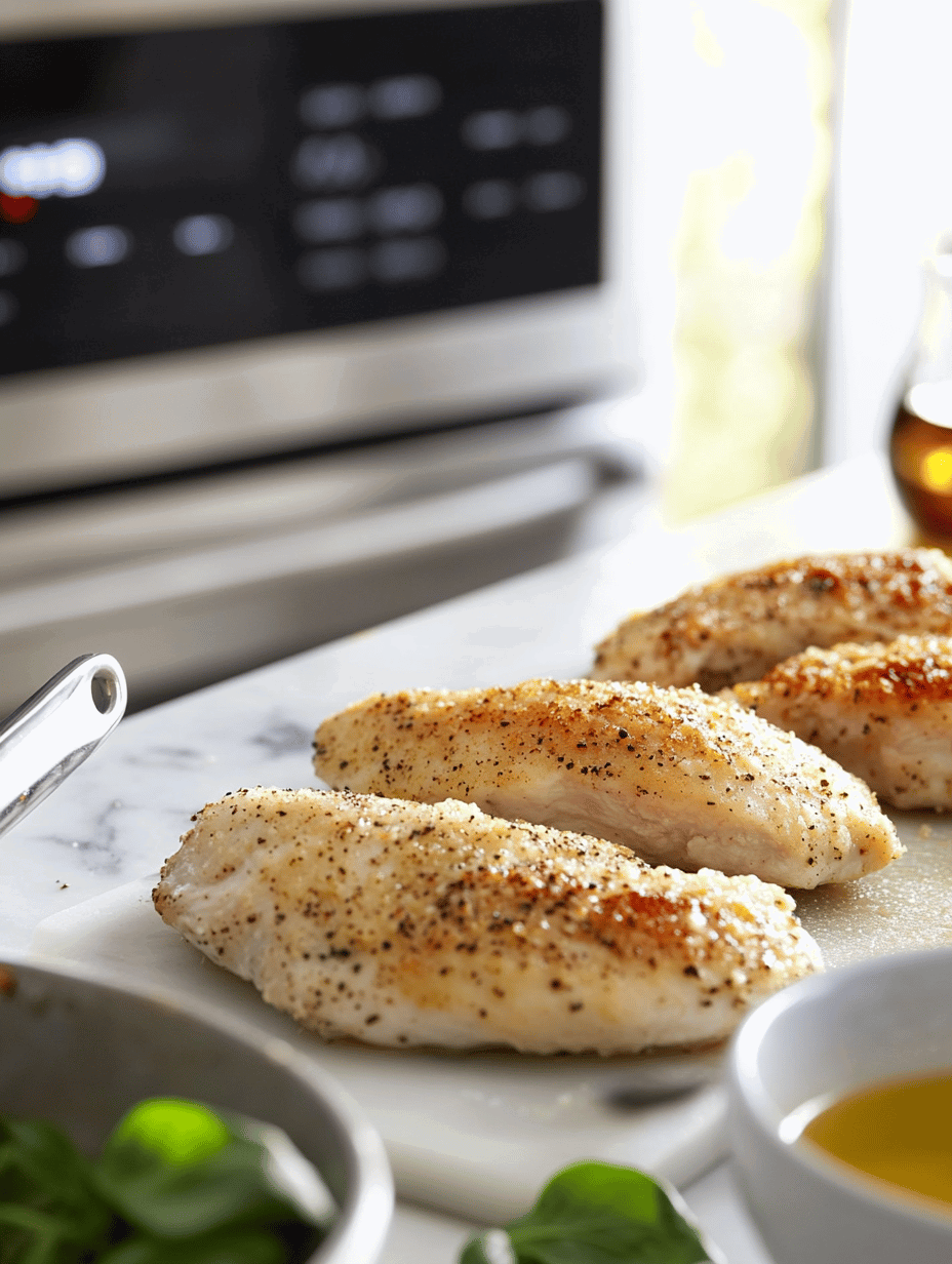 • Season the chicken with salt, pepper, and Italian seasoning.