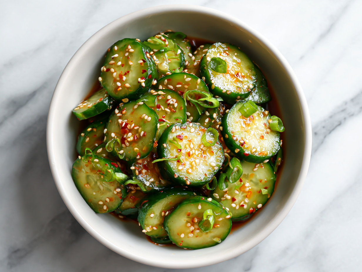This Spicy Cucumber Salad is a quick, no-cook dish bursting with bold flavor. Fresh, crunchy cucumbers meet a tangy, garlicky, chili-infused dressing perfect for clean eating or a light, spicy side.