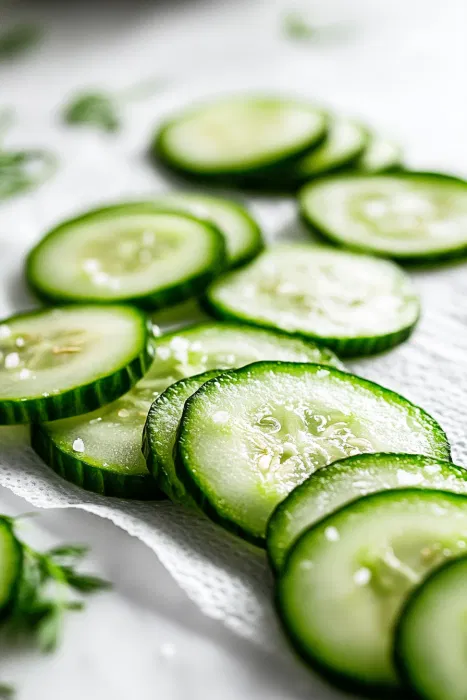 Place the slices on a paper towel and sprinkle a tiny bit of salt to draw out extra water.