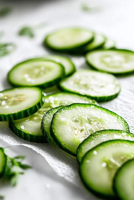 While the cucumbers rest, soften butter or cream cheese so it spreads smoothly.