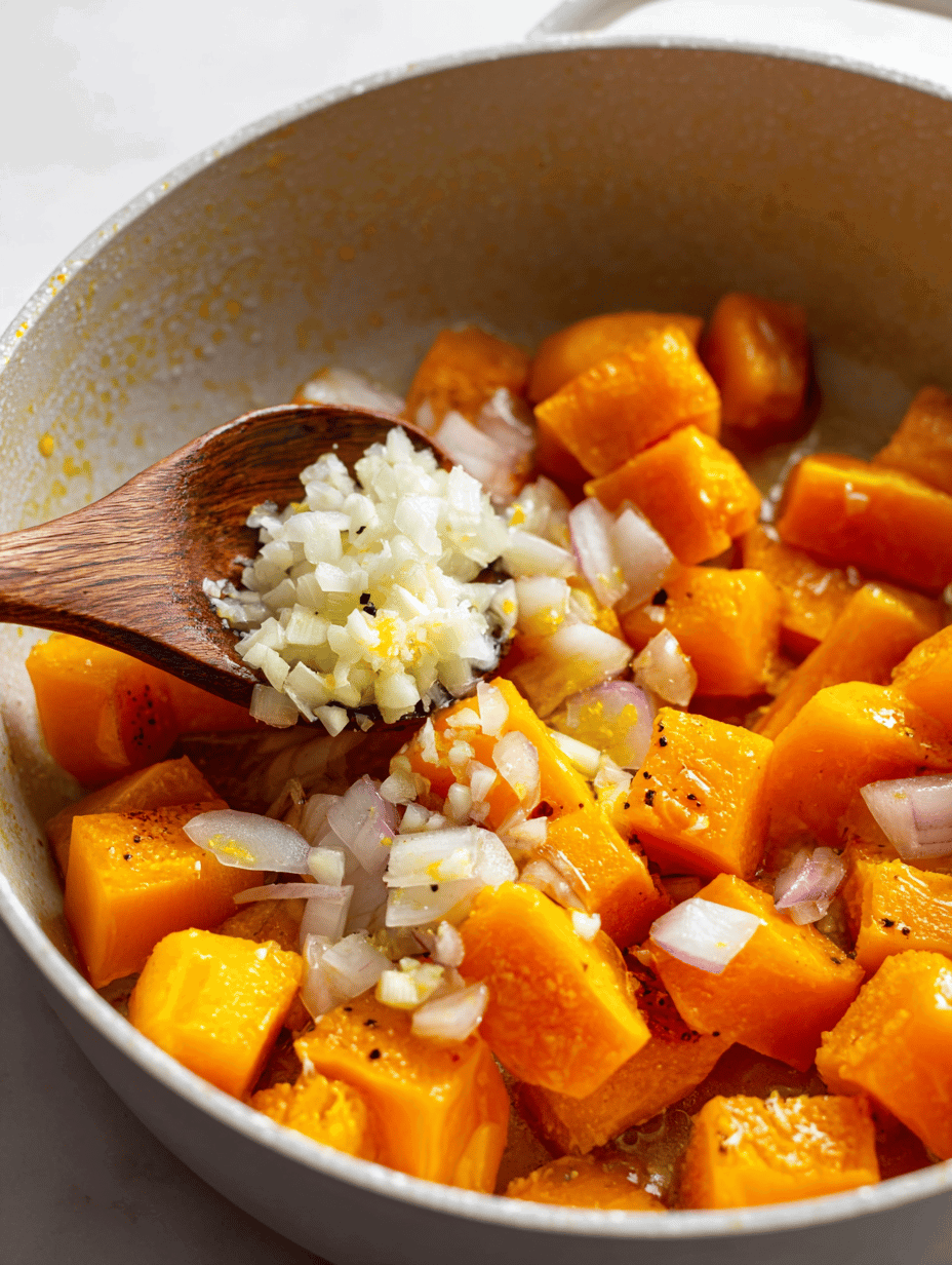 • Add the minced garlic to the onions and cook for another minute until fragrant, ensuring it doesn’t brown or burn.