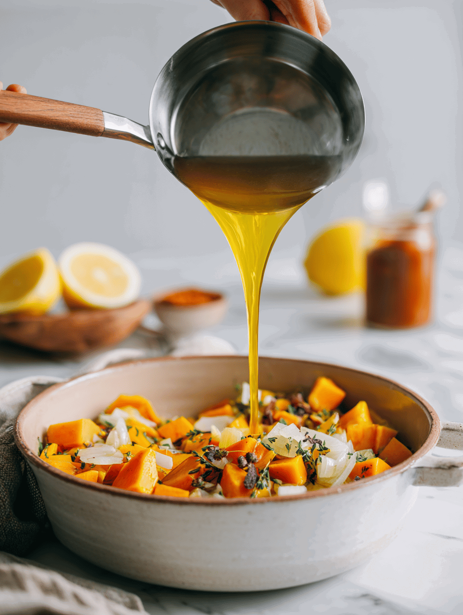 • Olive oil: Helps roast the pumpkin evenly and adds a fruity, smoky note.
