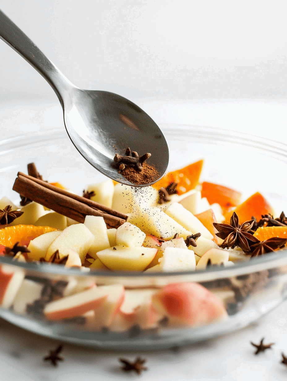 • Sprinkle the whole cloves into the mixture, dispersing them throughout to enhance the warm, spicy fragrance.