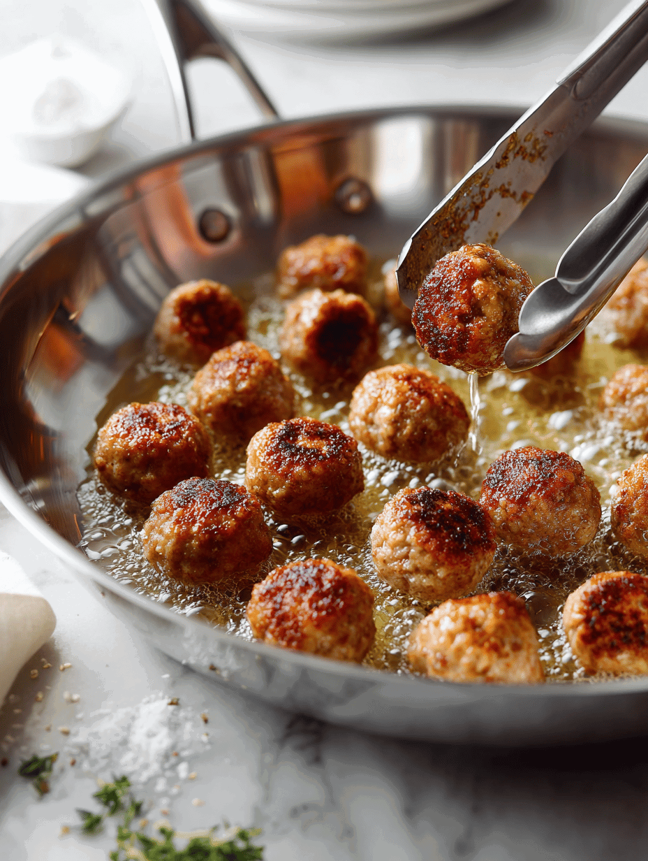 Step 4: Heat a skillet with oil over medium-high heat. Brown the meatballs until they’re crispy and golden, about 4-5 minutes.
