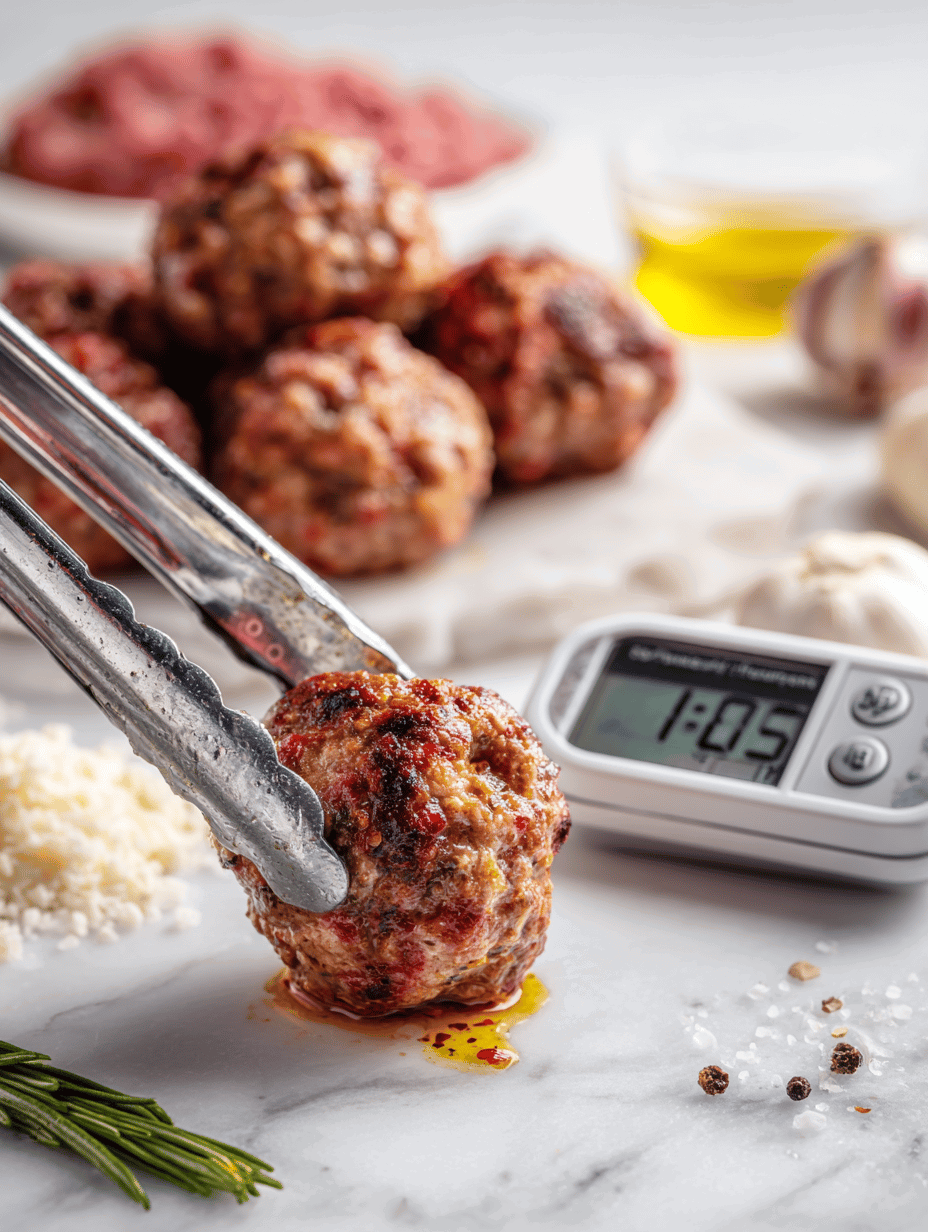 - When browning, ensure the oil is hot enough so the meatballs sizzle immediately upon contact.