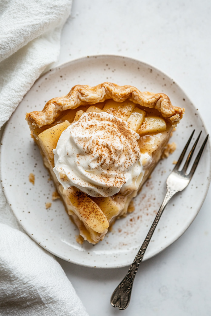 This Apple Cider Cream Pie is an unexpected twist on a classic. The tart apple cider gives the silky custard filling a bright, tangy flavor, balanced by the buttery, flaky crust. Topped with a dollop of whipped cream, it’s the kind of dessert that surprises and delights with each bite. It’s the perfect blend of light and rich, making it an ideal treat for fall and winter celebrations.