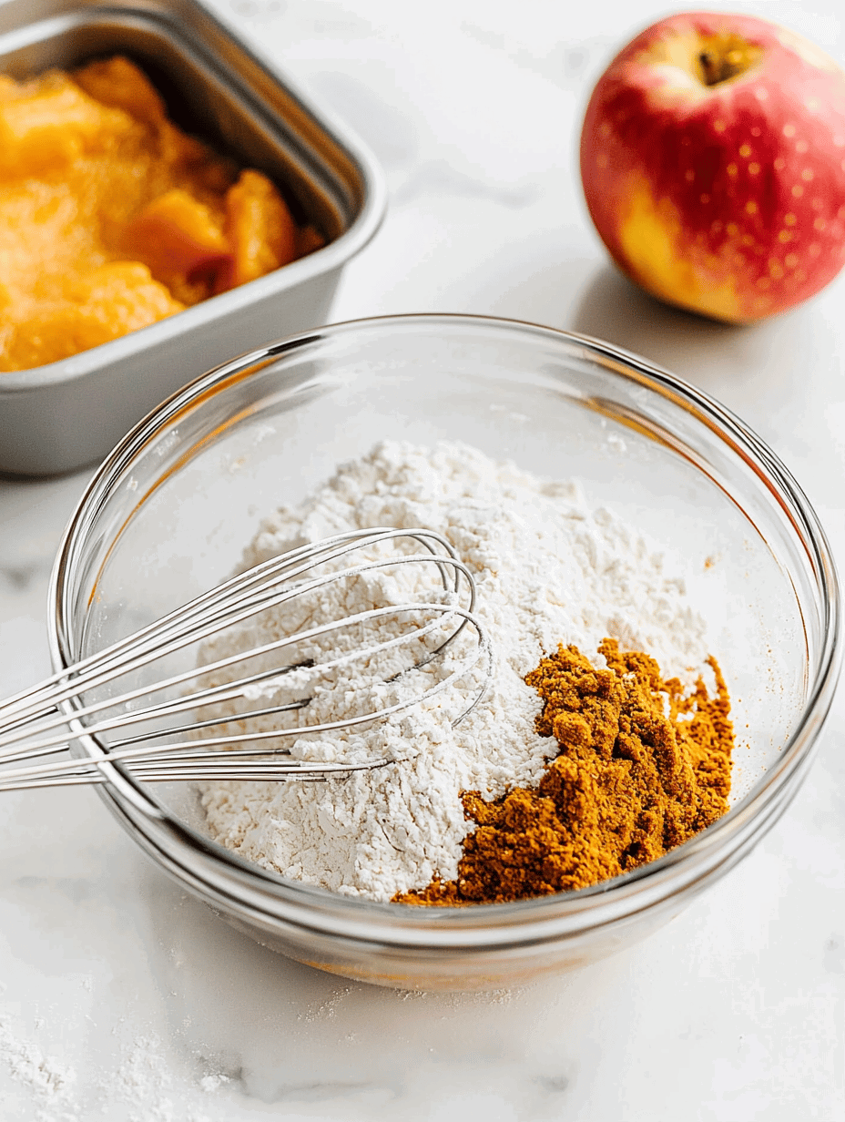 - Preheat your oven to 350°F (175°C) and grease a standard loaf pan. In a large mixing bowl, whisk together the flour, sugar, spices, and baking soda until well combined.1 3/4 cups all-purpose flour, 1 cup granulated sugar, 1 teaspoon ground cinnamon, 1/2 teaspoon ground ginger ground ginger, 1/4 teaspoon ground nutmeg nutmeg, 1 1/2 teaspoons baking soda