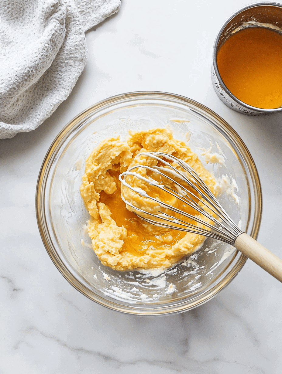 - Pour the wet ingredients into the dry ingredients, gently folding with a spatula until just combined; do not overmix to keep the batter tender.
