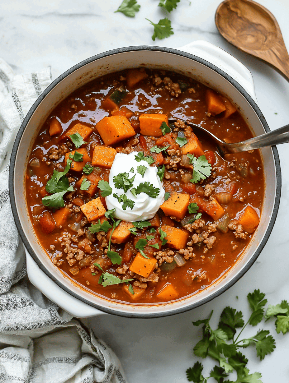 There’s something special about turning seasonal ingredients into a simple yet deeply flavorful meal. This fall-inspired turkey chili celebrates the richness of sweet potatoes and savory spices, all in one warm bowl. It’s a dish that feeds both body and heart, perfect for those brisk nights when comfort is top priority.