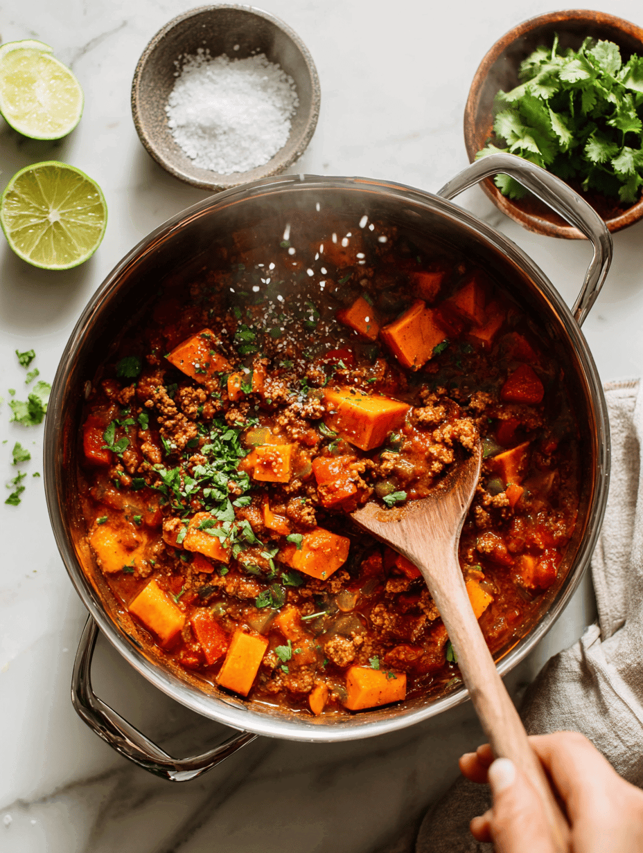 There’s something about peeling sweet potatoes after a busy day that makes me feel grounded, like I’m reclaiming a little bit of calm. This chili isn’t fancy, but it’s honest — a warm bowl that gathers everyone around, even if it’s just the two of us. I love how the sweet potatoes add a soft, earthy sweetness that balances the smoky spice, turning a simple weeknight dinner into something satisfying.