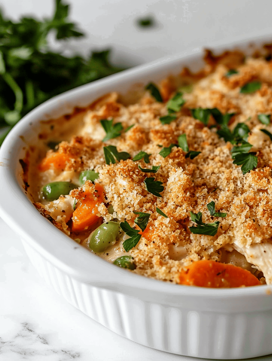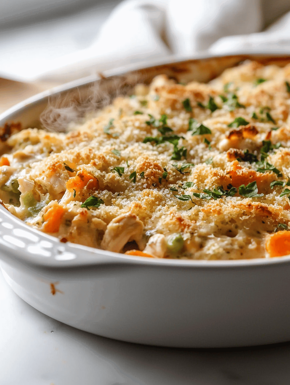 Fall is a season of transition and this casserole fits right into the rhythm of shorter days and longer nights. It’s an invitation to pause and savor meals that bring comfort without demands. The combination of tender chicken, seasonal herbs, and cheesy topping make every serving a small celebration of autumn’s bounty.