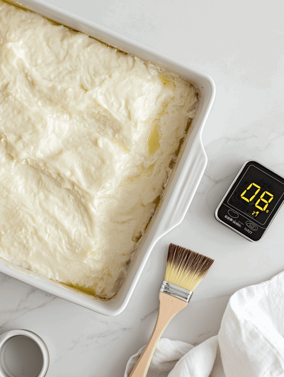 - Sprinkle the shredded cheese evenly over the top of the casserole, covering all the surface for a melty, cheesy crust.