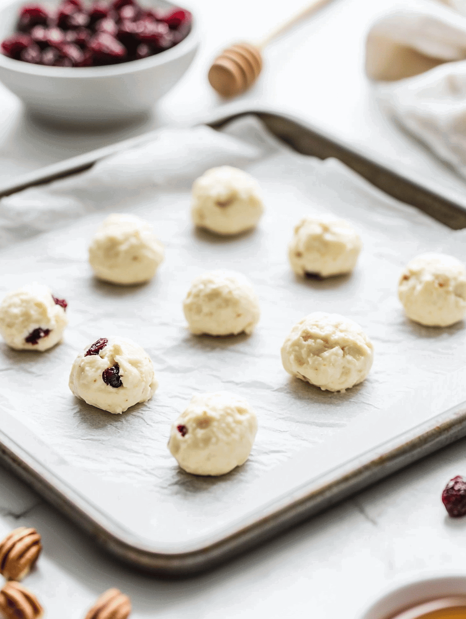 • Place the formed cheese balls onto a baking sheet lined with parchment paper, spacing them evenly.