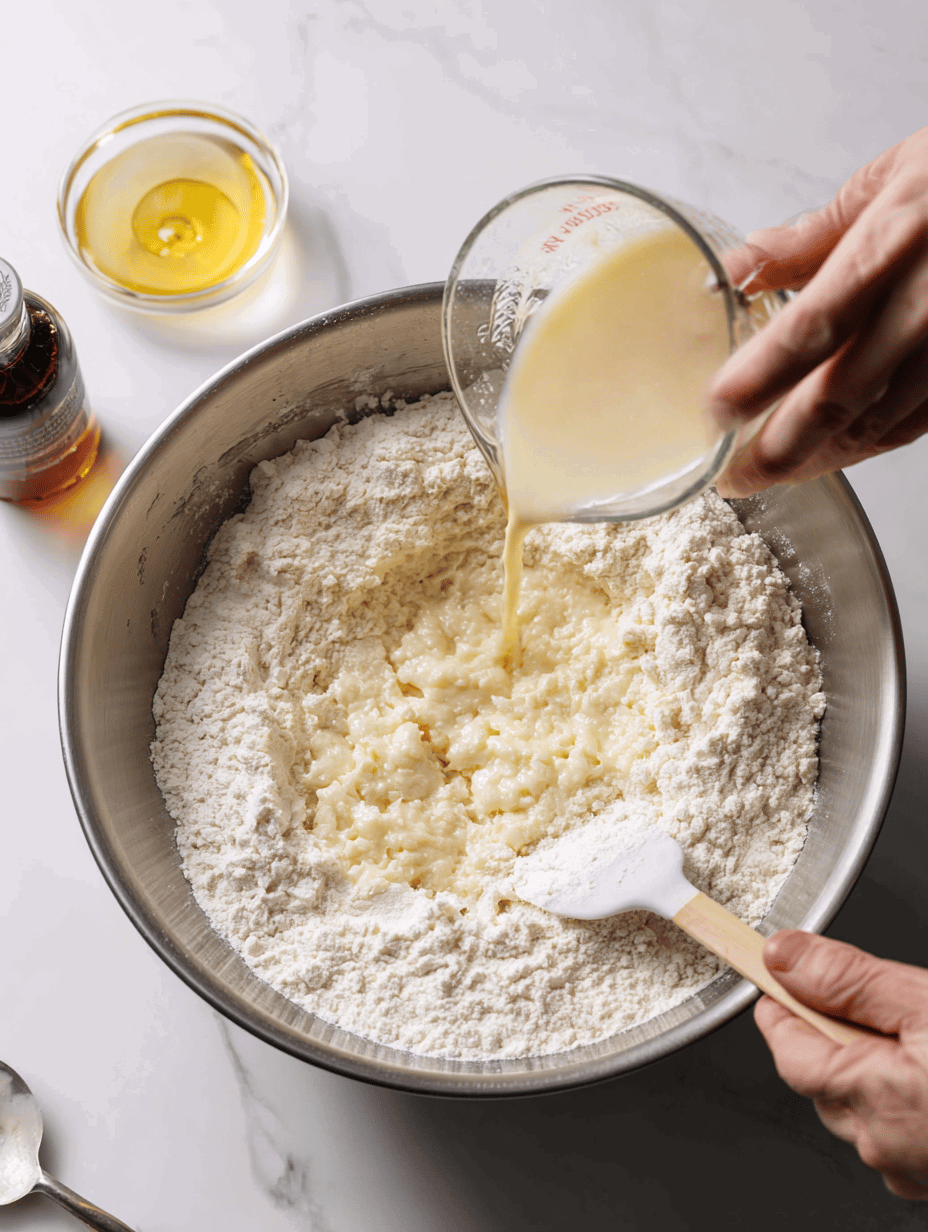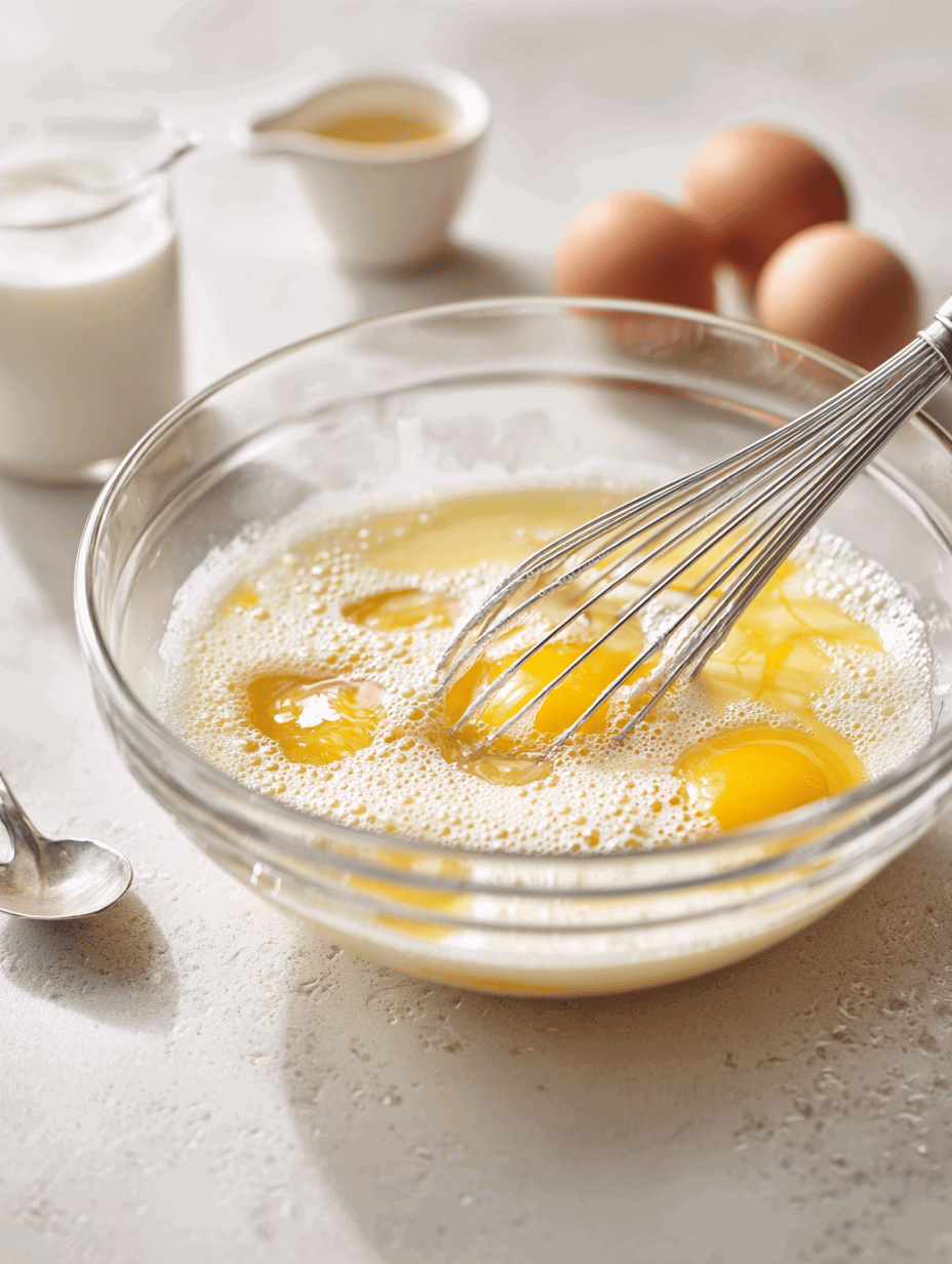 - In a separate bowl, beat the eggs with the milk, melted butter, and vanilla extract until the mixture is smooth and slightly frothy—this fills the air with a subtle aroma.