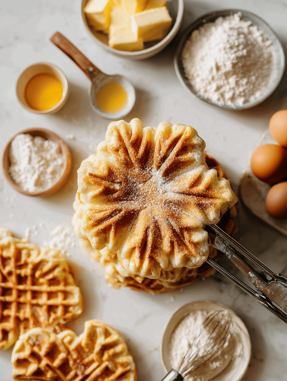 - Carefully open the waffle iron, then lift the waffle with a spatula, revealing a delicate, airy, and golden ghostly shape.