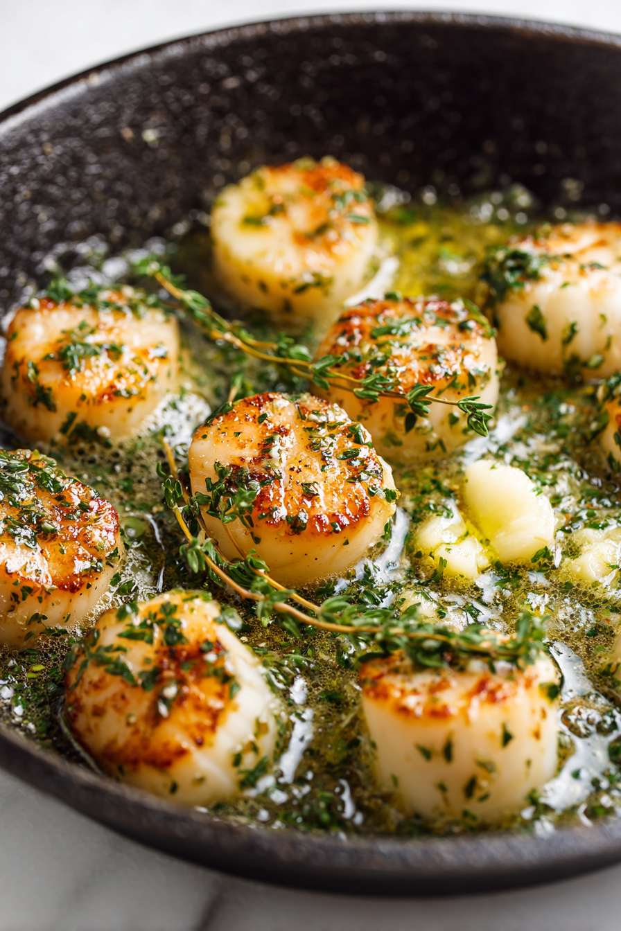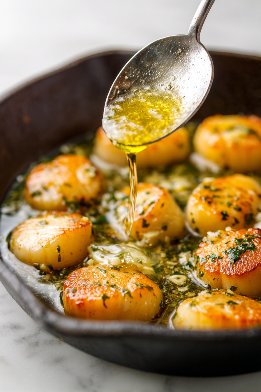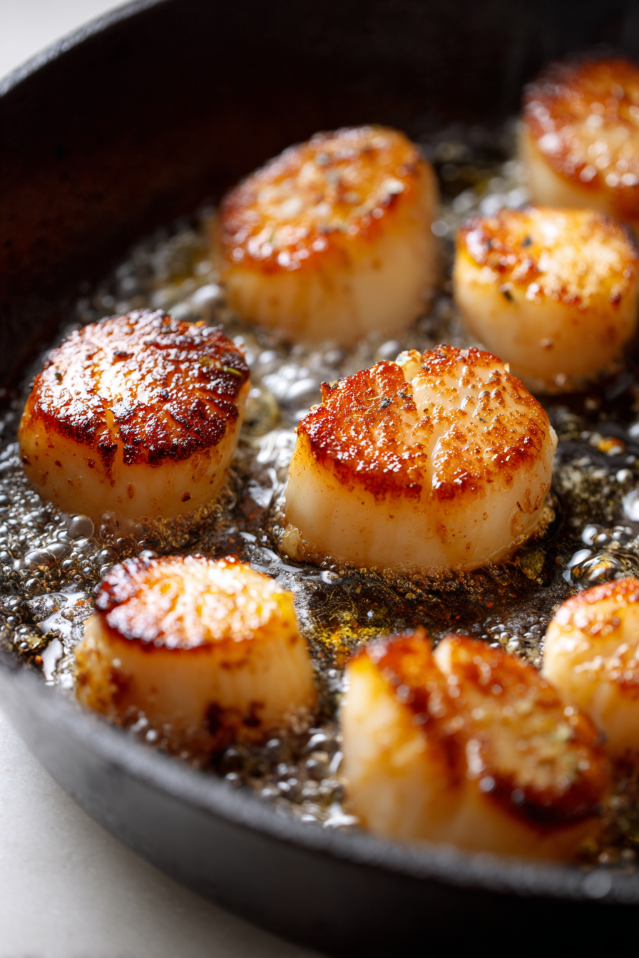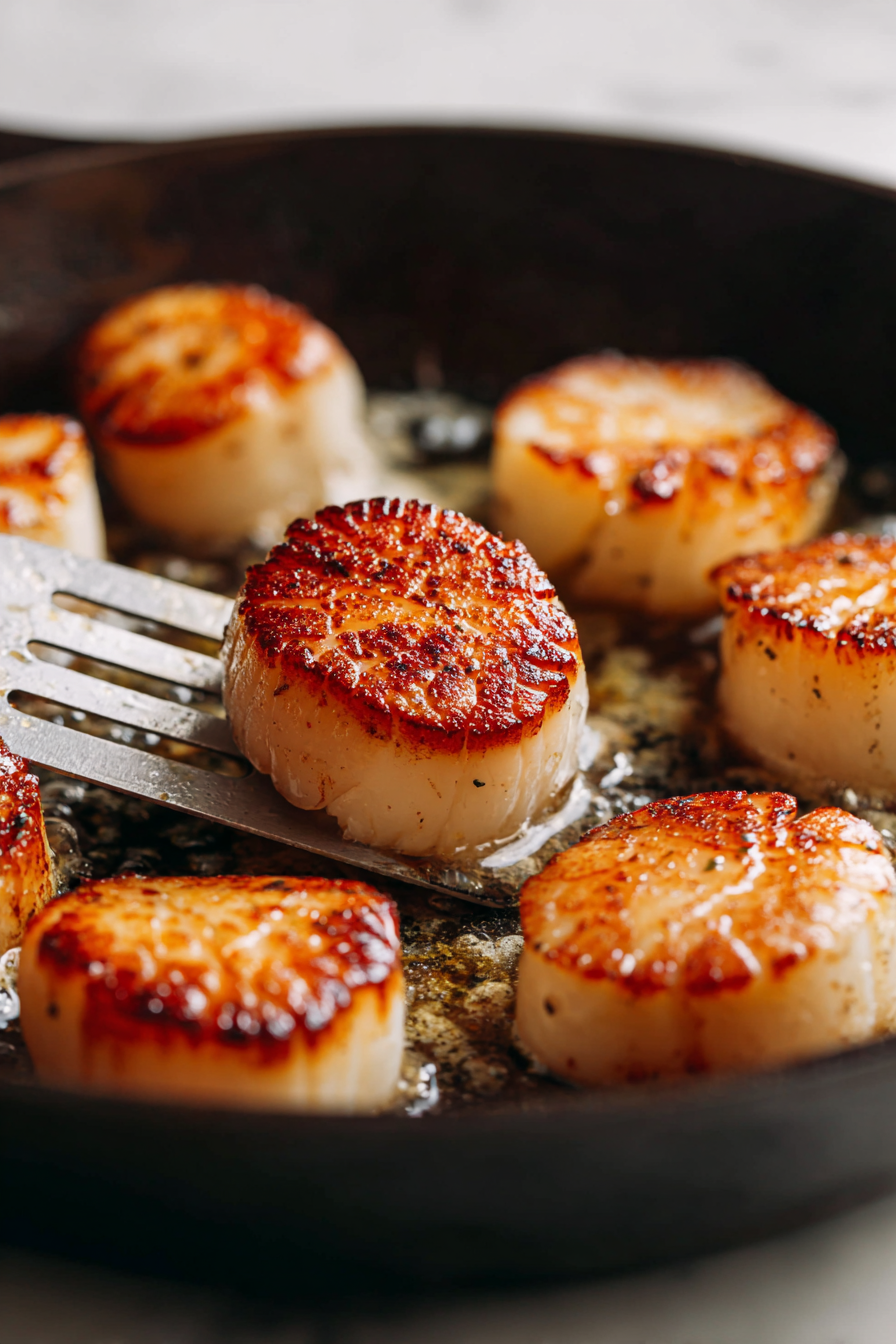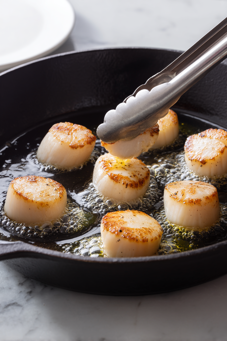 The result is golden, evenly seared scallops with a tender interior.
