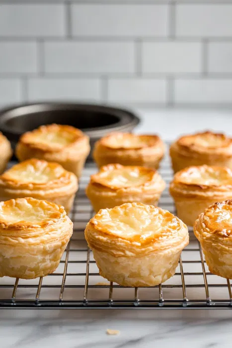 - Bake the Pastry ShellsBake at 400°F (200°C) for about 12–15 minutes or until crisp and golden. The layers should rise and separate slightly, forming a light, flaky cup.