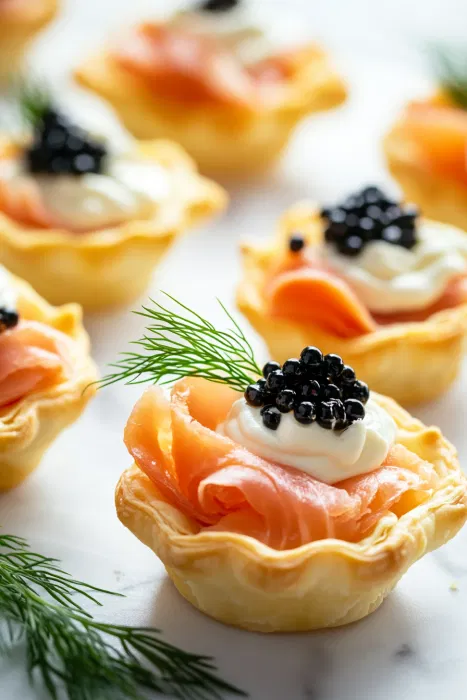 - Fold the Smoked SalmonSlice the smoked salmon into long, soft ribbons. Fold each ribbon loosely so it fits naturally into the pastry cups without being packed tight.