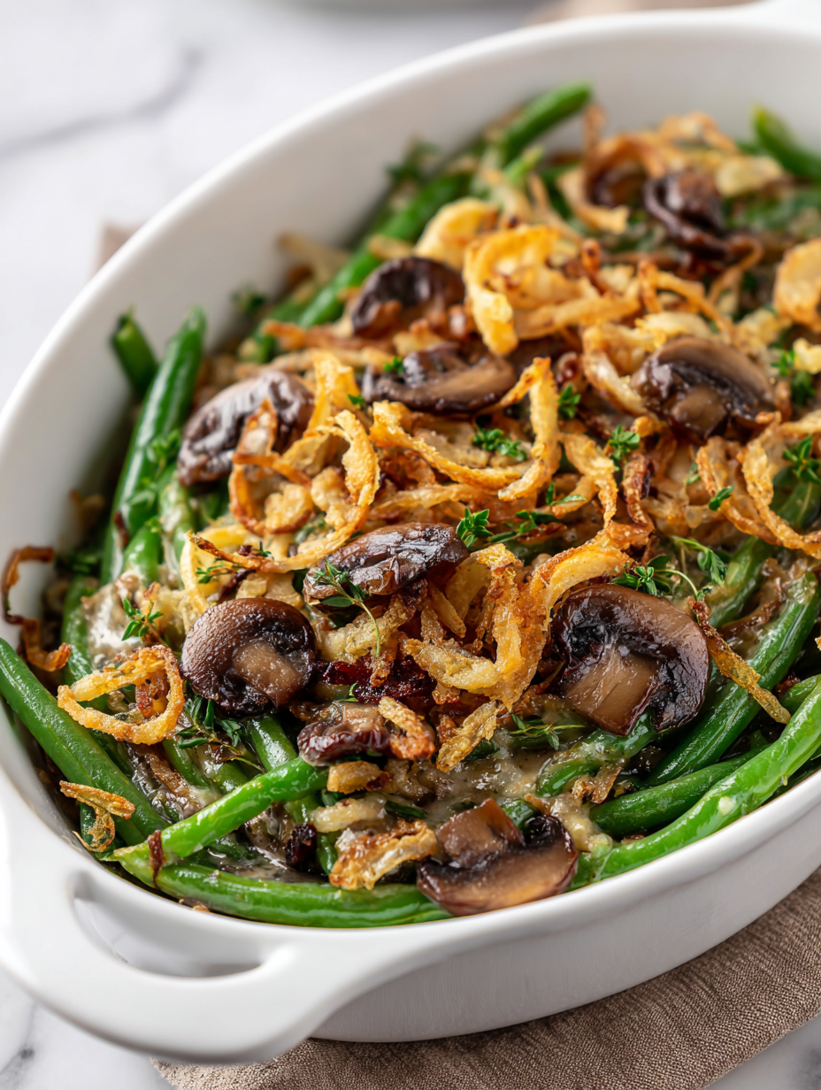 Green Bean Casserole with Mushrooms and Crispy Onions