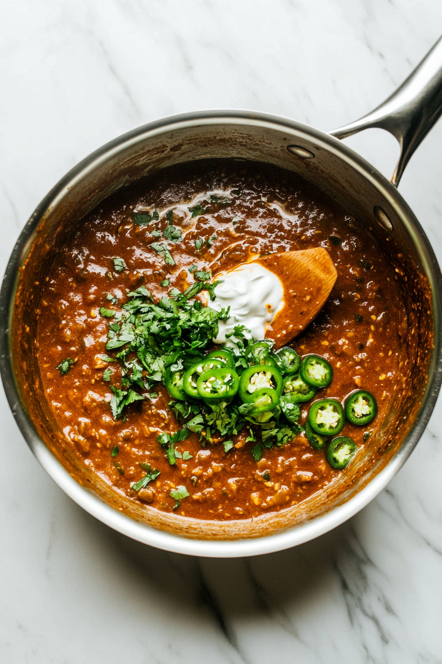 - Slowly whisk in chicken broth and cook until thick, then add green chiles, jalapeños, and salt. Stir in sour cream.